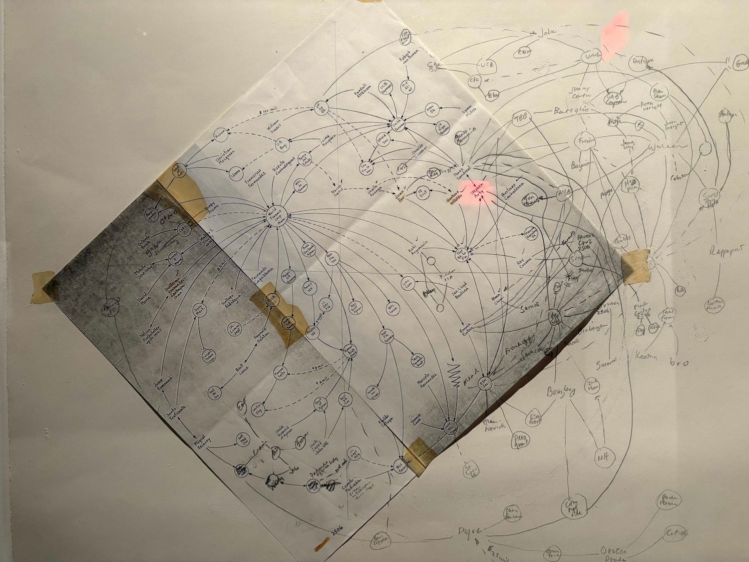As an opening (above), I’ve begun to map these relations of force as intersections between institutions (green), abusers (red) and those they target (black). Obviously, it could be widely extended but, even in this form, it shows how educational, financial and even art institutions support abusers as part of the structure of dominance, while their targets are entirely disposable.